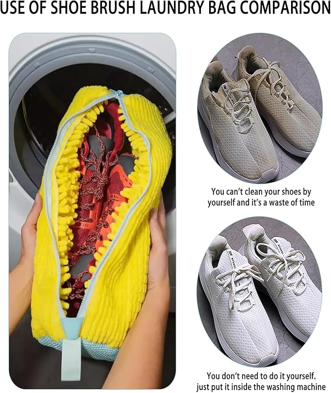 - 【Shoe Washing Machine Bag to Help Free Your Hand KITSSENTIAL shoe washing bag is designed with mesh holes and fluffy fibers to clean your shoes 360° cocoon. Machine washing is cleaner than ordinary hand washing, more time-saving, more labor-saving, compared to brushes to brush your shoes, this shoe cleaning bag can protect your shoes and extend the service life. You only need to load the shoes into the shoe washing bag, throw it into the washing machine, a moment to get a pair of brand-new shoes.